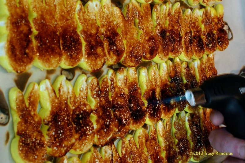 I wanted to enhance the marshmallow flavor, so I decided to set them on fire toast them. I chopped the Peeps in half (more surface area for toasting!) and used a blow torch. I’m not going to lie…torching Peeps was super fun.