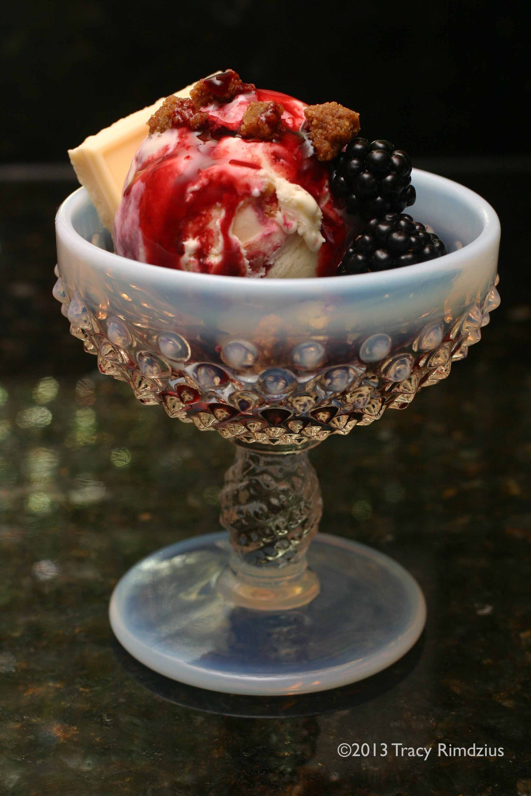 I must be getting better at ice cream recipe development, because the hardest part of developing this flavor was doing the math to add white chocolate to my ice cream mix spreadsheet. I worried about perfecting a recipe before the end of blackberry season, but the first test batch I made was magnificent, if I do say so myself. The second most difficult part of developing this recipe was not eating the quart I made for the winner before I could deliver it to her.